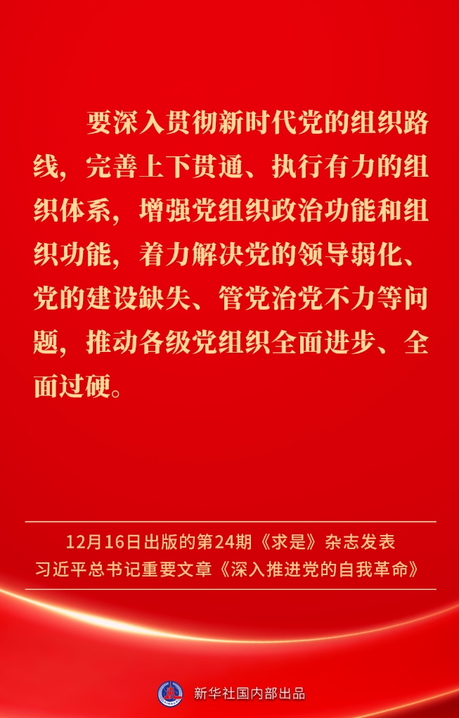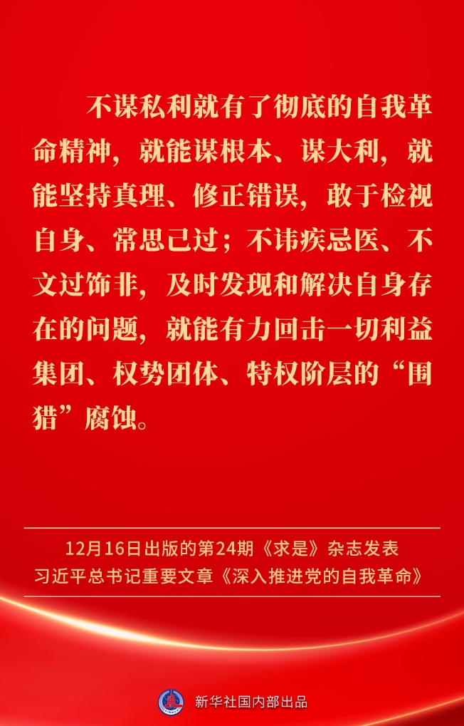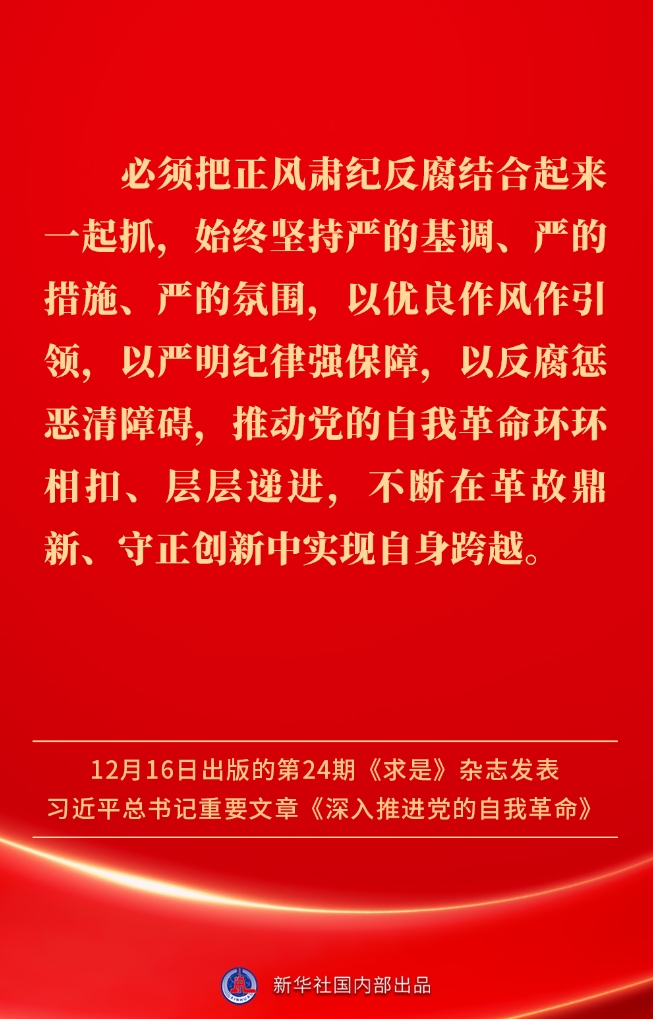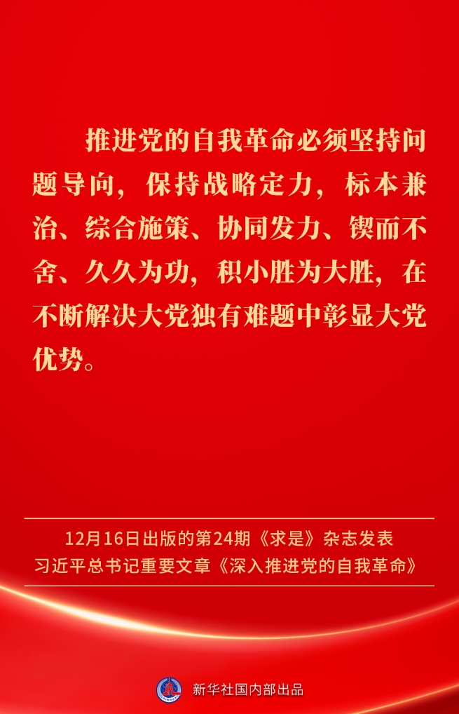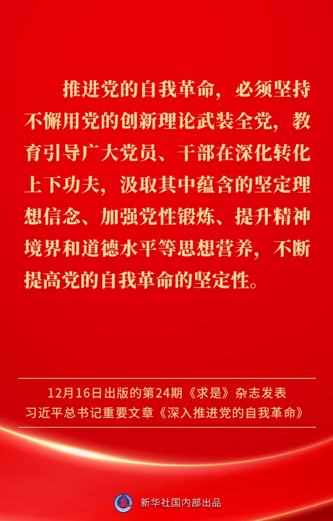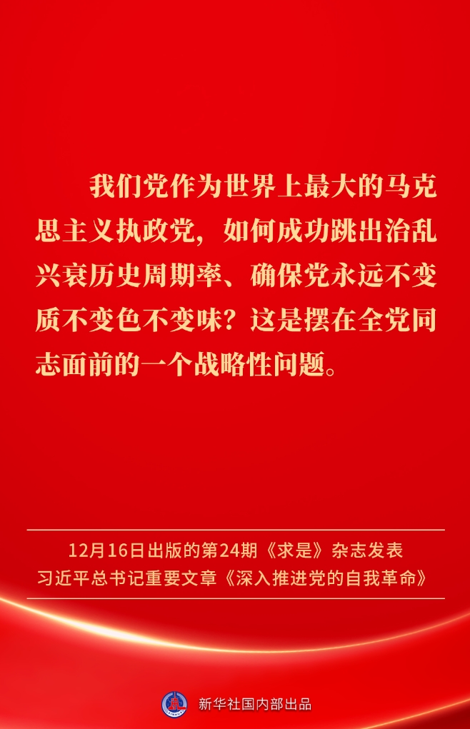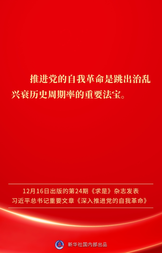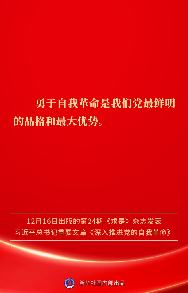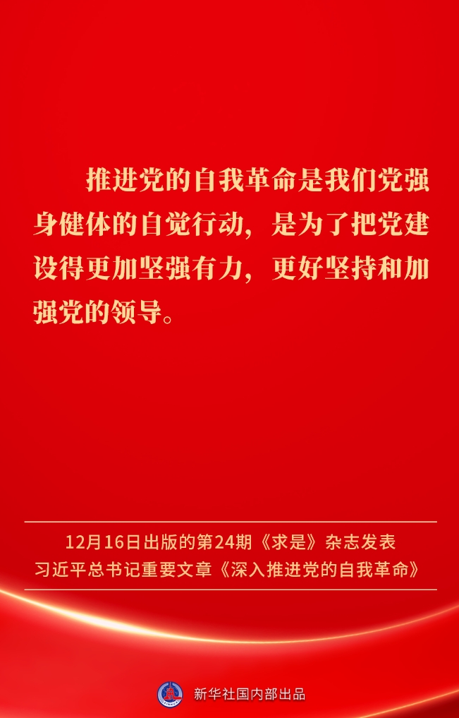 12月16日出版的第24期《求是》杂志发表习近平总书记重要文章《深入推进党的自我革命》。我们党为什么要自我革命、为什么能自我革命、怎样推进自我革命?习近平总书记这样阐述——