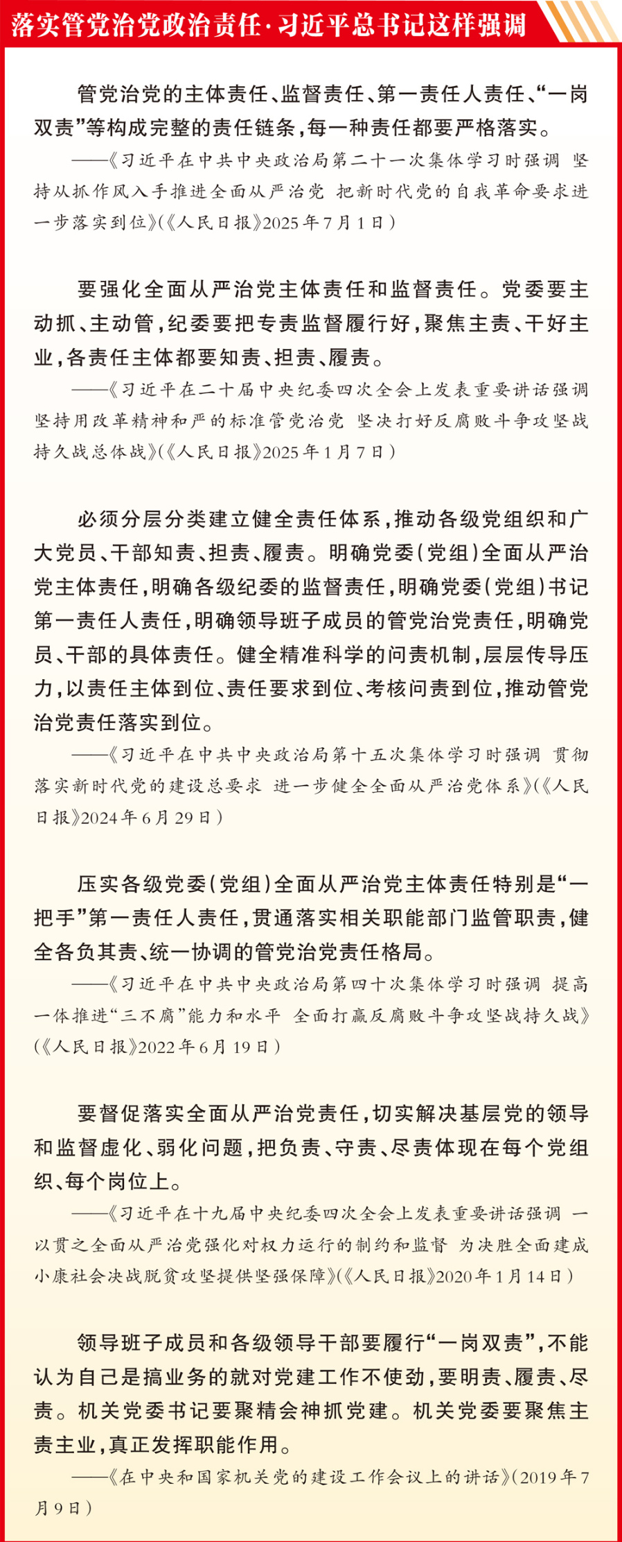 “有责必问、问责必严”是推动责任落实的重要抓手。通过强有力的问责,能够倒逼党员领导干部强化责任意识、激发担当精神,推动管党治党责任落实到位。