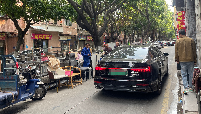 由于长期承受着很大的交通压力,新村大道设施老旧、路面日渐破损,路内停车位又严重不足,导致乱停乱放现象时有发生,加上不少临街商铺为阻止车辆停靠门前,摆放雪糕筒、二手家具等杂物占用道路,部分屋主也在屋前私设石墩、花盆以防车辆碰撞,进一步加剧了交通拥堵。这种状况不仅影响了社区居民的出行和沿线商户的经营,还削弱了商业区之间的有效联动,影响构建“连珠成片”的文旅发展格局,制约该区域的营商环境优化。