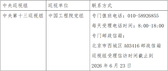 已进驻中央巡视组联络方式: